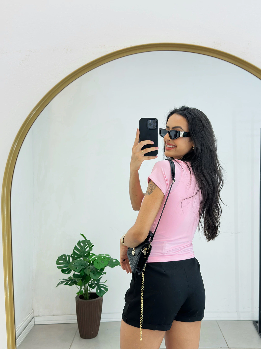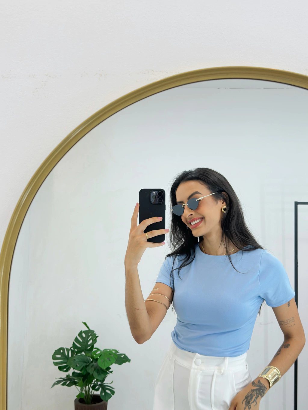 Perfeita para combinar com jeans, saias ou shorts, essa blusa babylook é indispensável para renovar seu guarda-roupa com uma peça que une beleza e conforto.