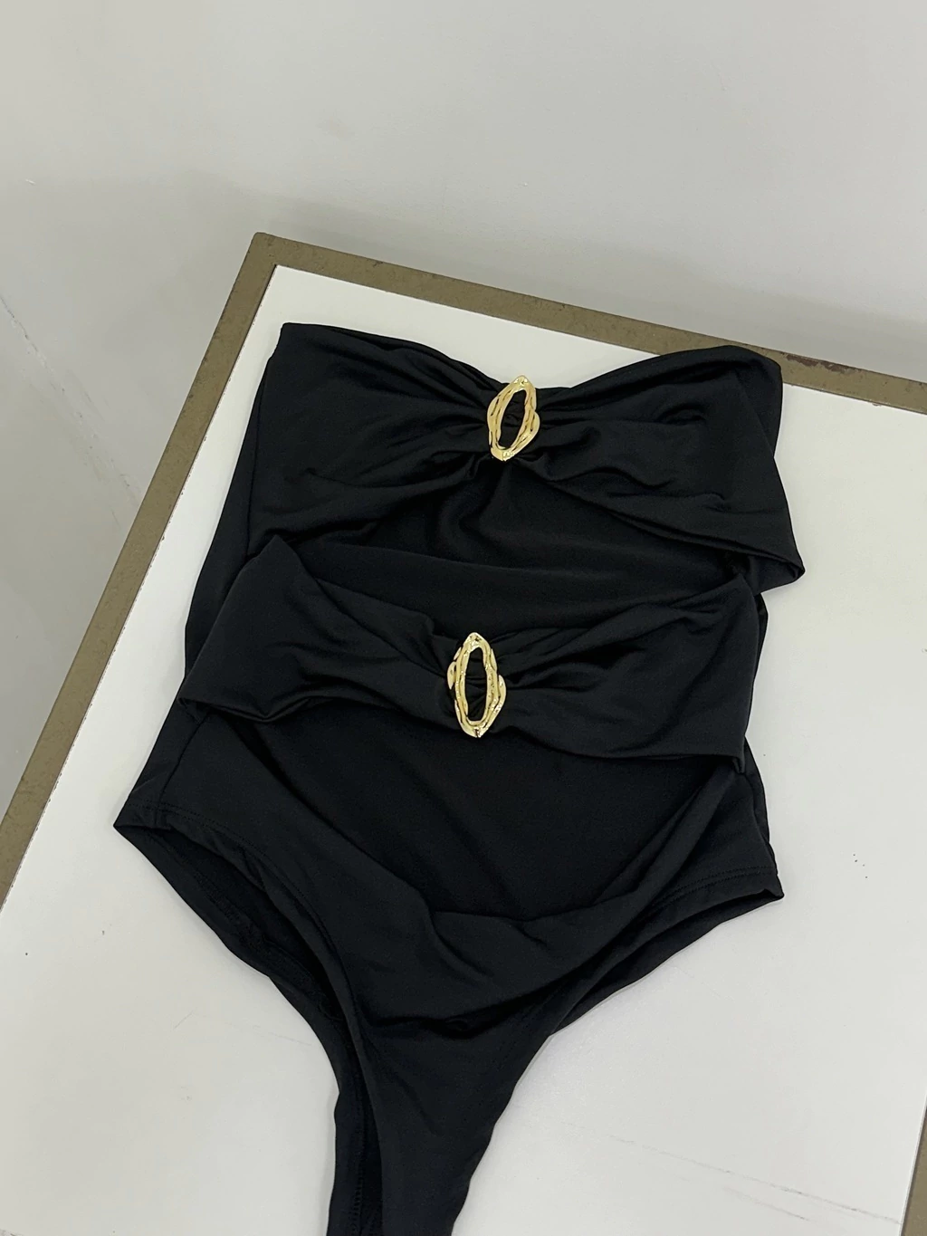 Descubra o Body Tomara Que Caia Sem Bojo com Detalhe de Fivela Dourada!