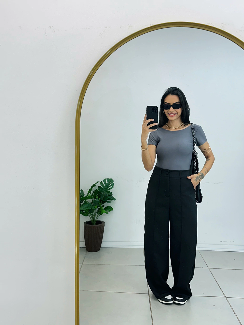 Descubra a Calça Pantalona Alfaiataria com Costura Frontal, a peça que une elegância e conforto para transformar seu visual! Com corte amplo e costura que valoriza a silhueta, ela é ideal para ocasiões formais ou looks sofisticados do dia a dia. Feita com tecido de alta qualidade, proporciona caimento impecável e toque suave.