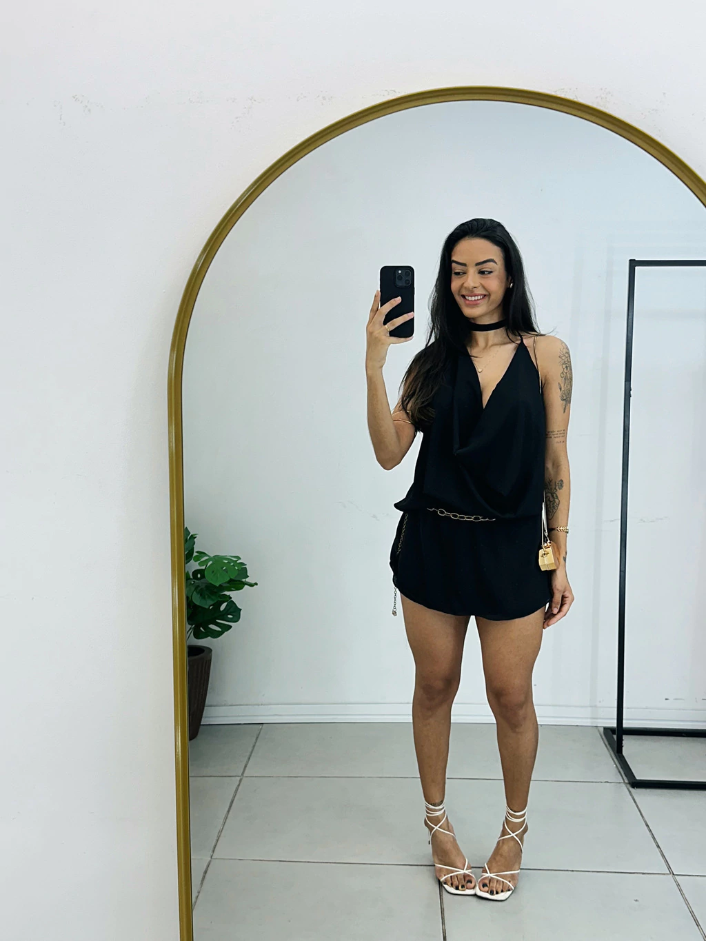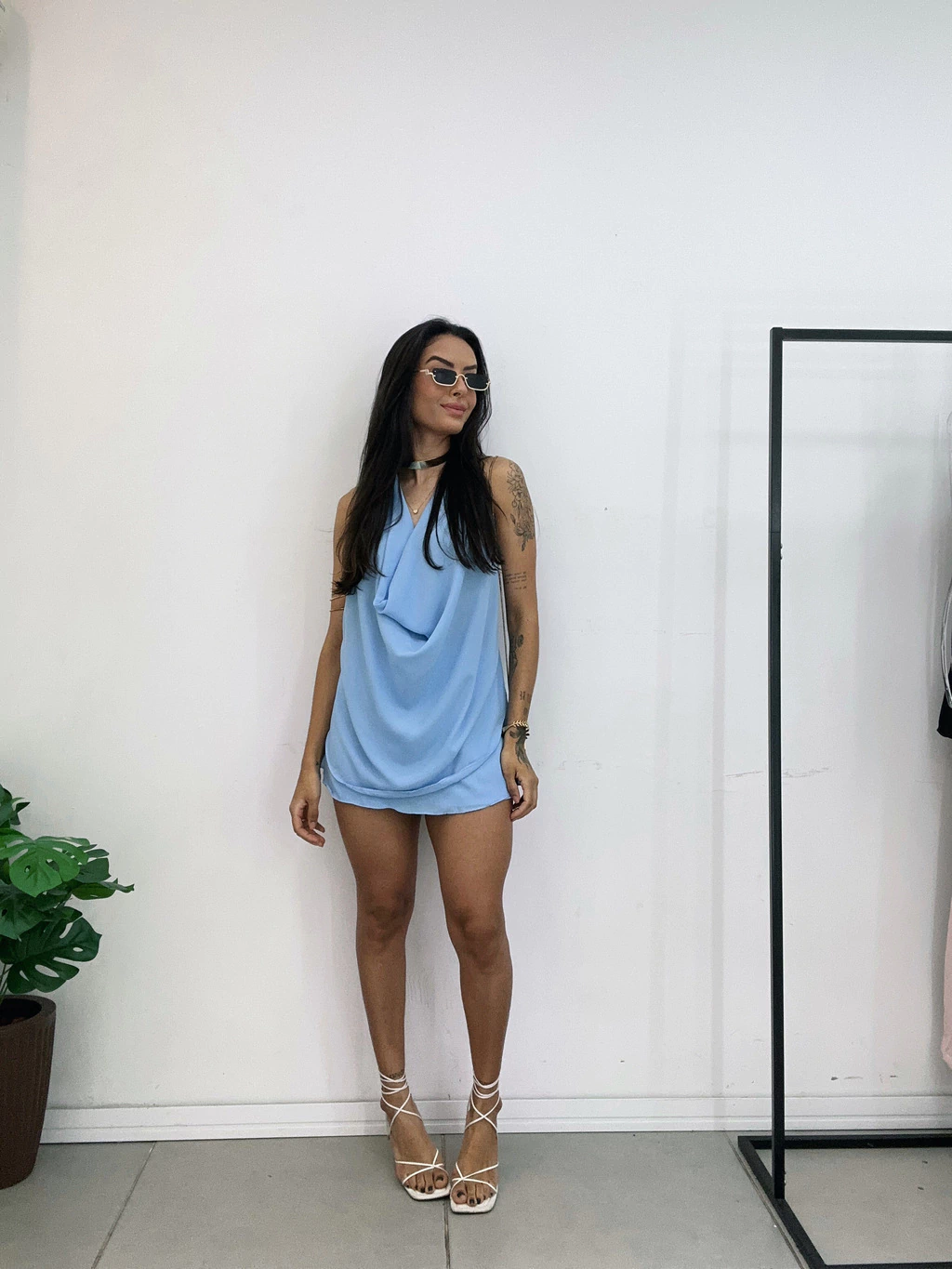 Destaques do produto: - Tecido crepe mousseline: leve e fluido, perfeito para o clima brasileiro. - Design frente única que realça a beleza natural. - Short saia que une conforto e estilo em uma só peça.