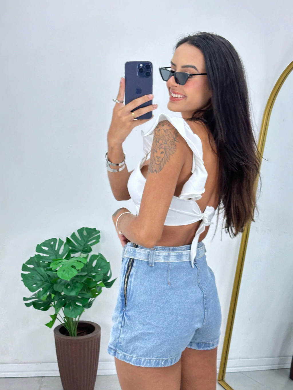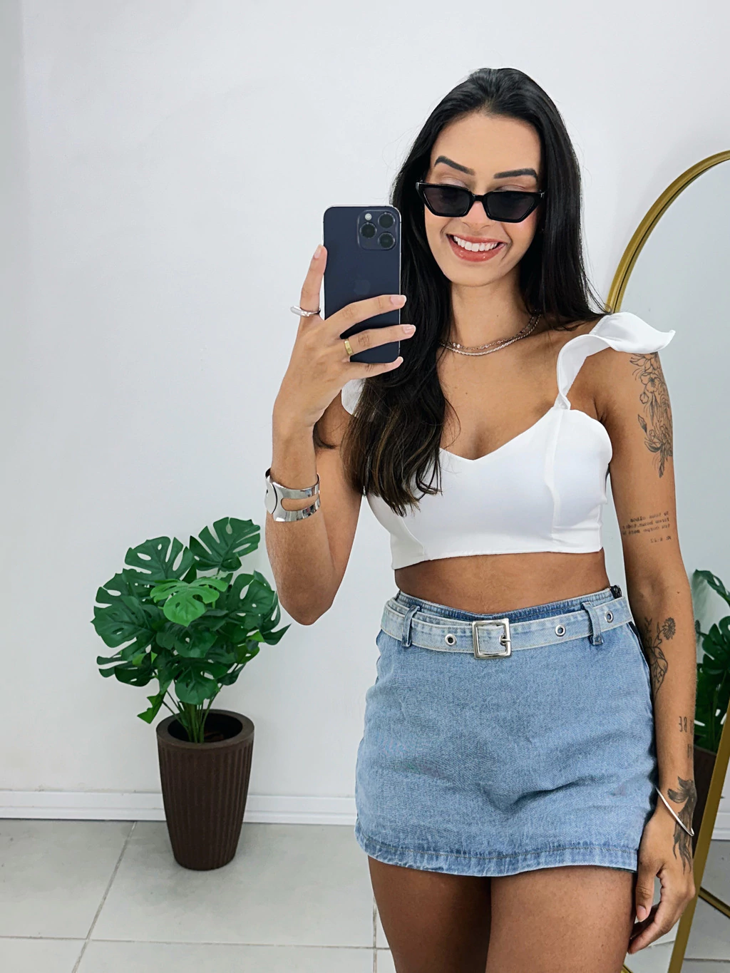 Descubra o Cropped Alfaiataria Babado, a peça perfeita para elevar seu estilo! Confeccionado em tecido plano utilizado em alfaiataria, esse cropped possui um bojo que proporciona suporte e uma modelagem que valoriza a silhueta.