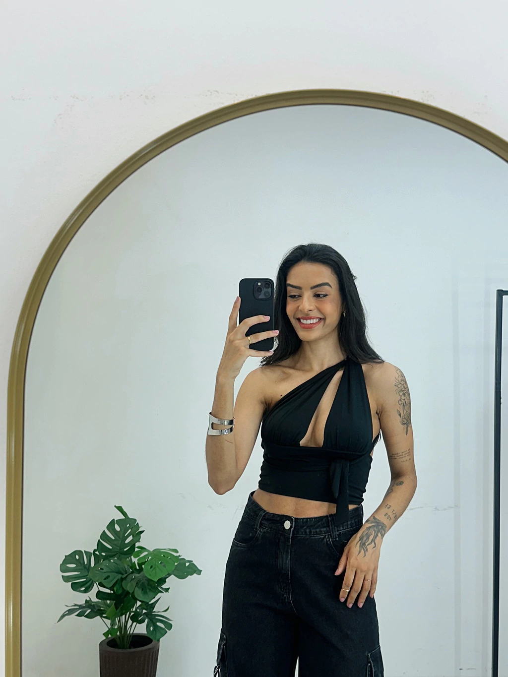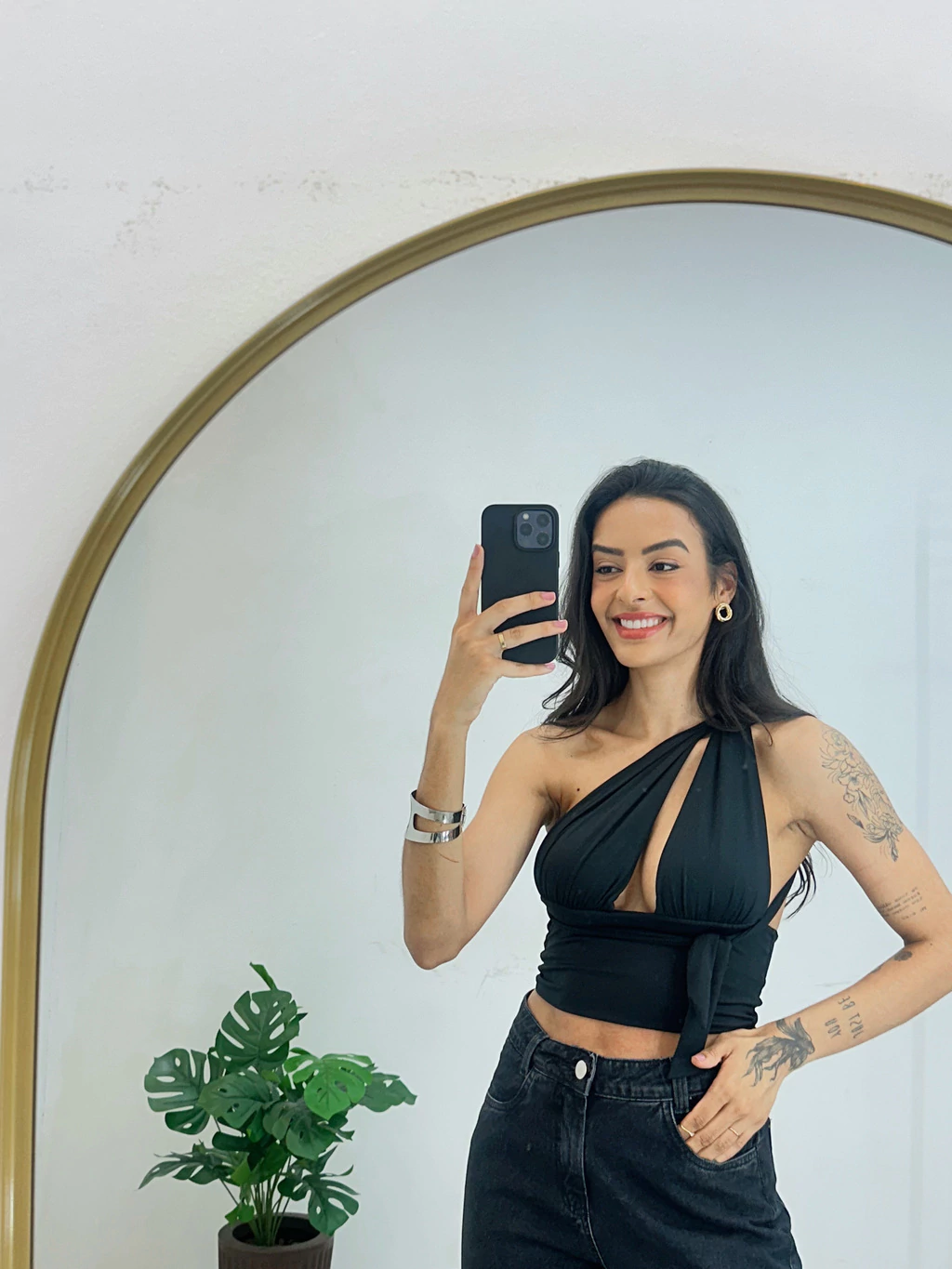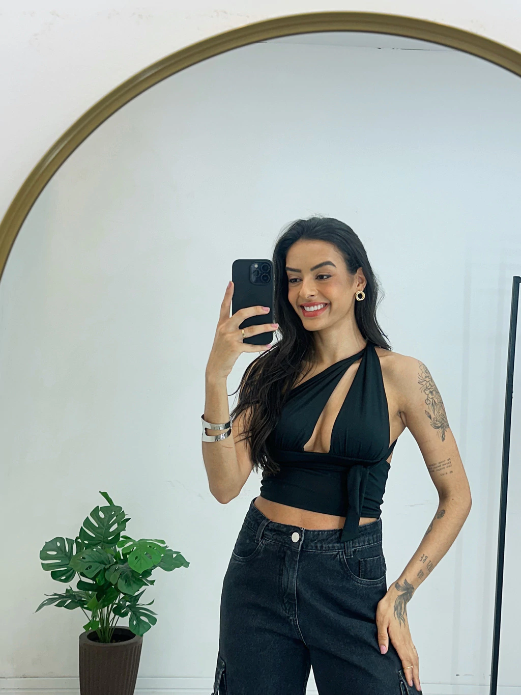 Descubra o Cropped Decote Ibiza, a peça perfeita para quem busca estilo e versatilidade em um só look! Com seu decote em V ajustável, ele se adapta perfeitamente ao seu corpo, permitindo múltiplas amarrações que valorizam sua silhueta de forma única.