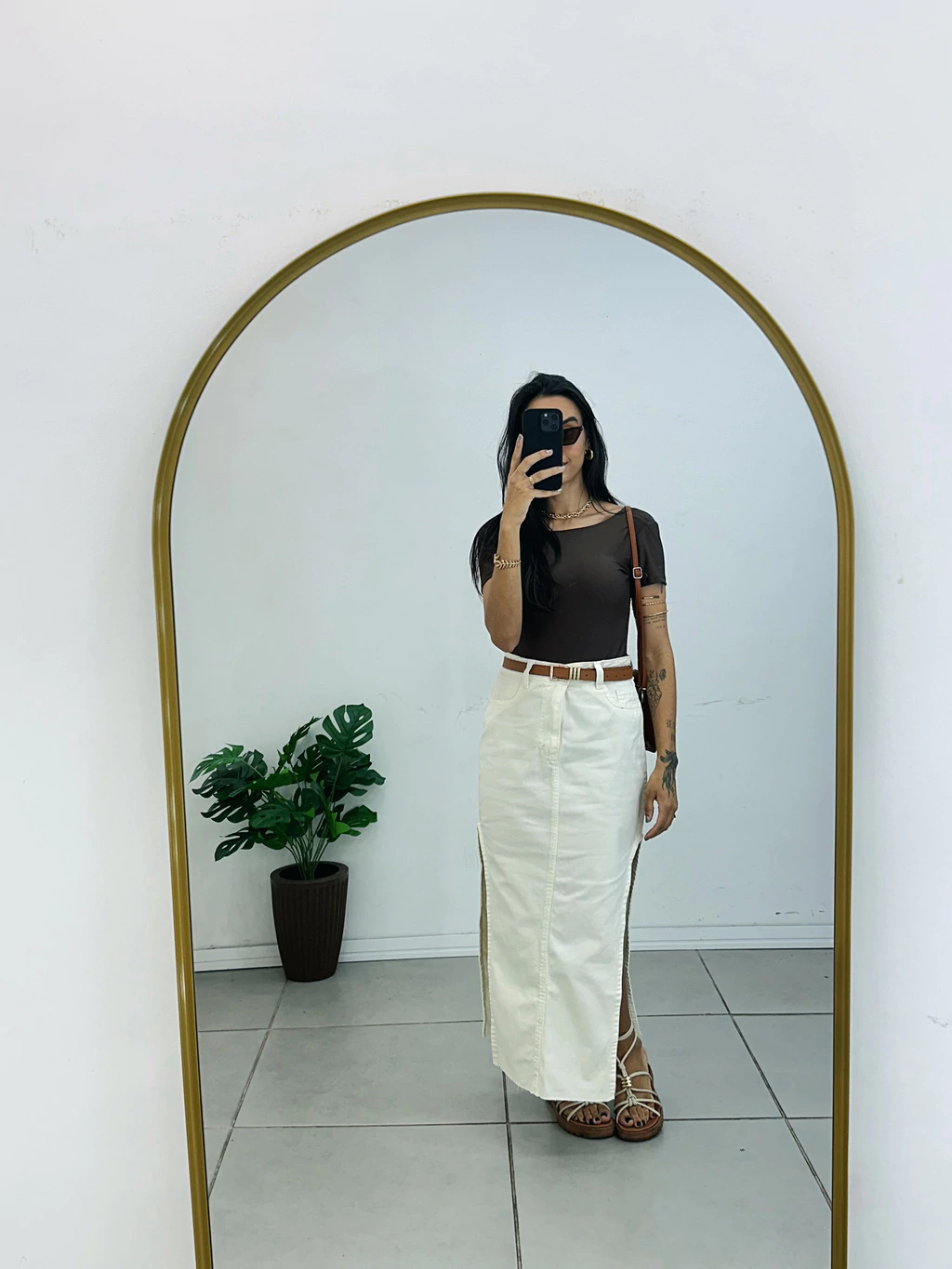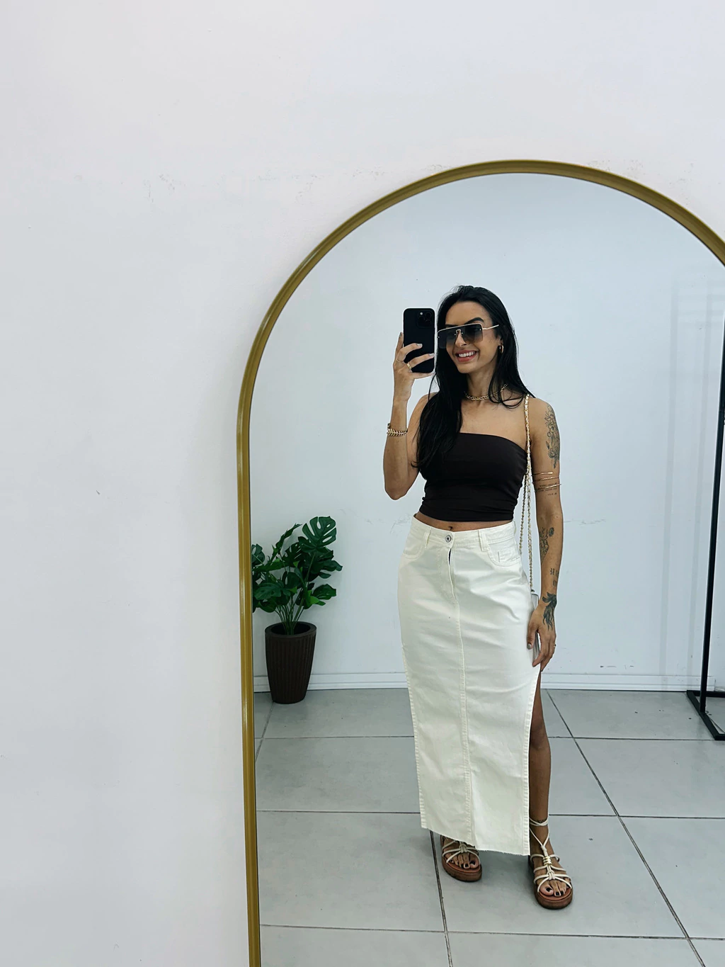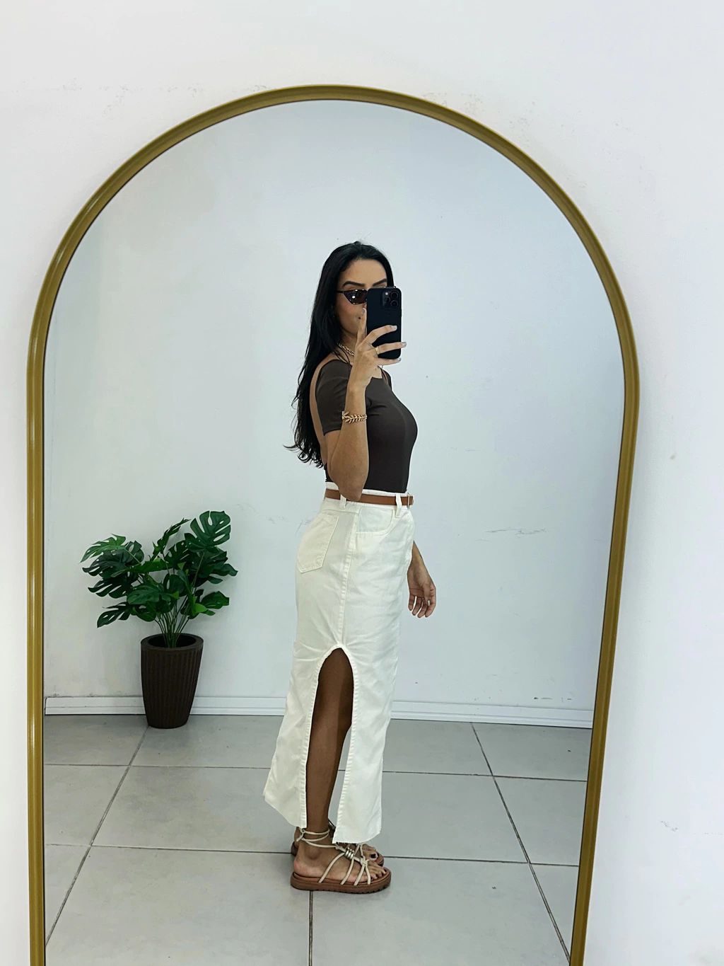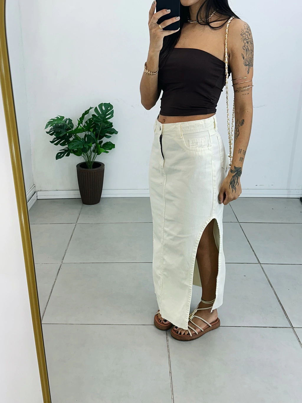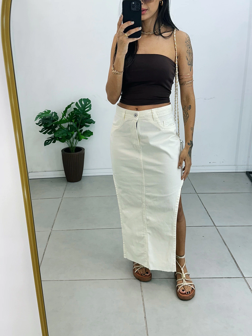 Saia Midi Jeans Off com Fenda Lateral – O toque de estilo que faltava no seu guarda-roupa!
