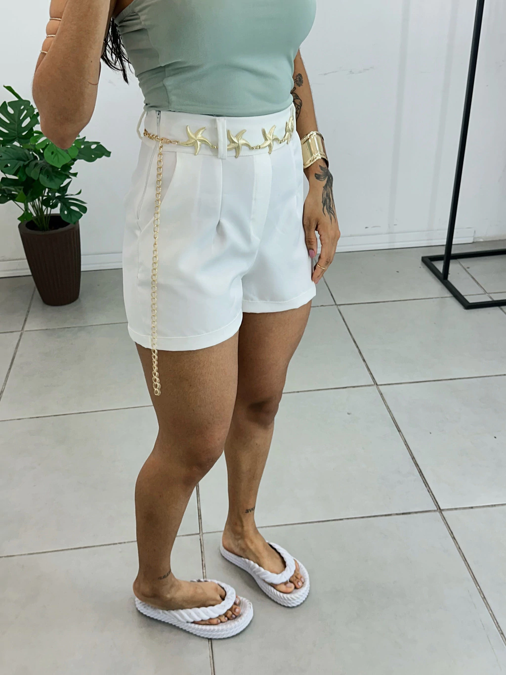Descubra o charme irresistível do Short Alfaiataria com Cinto Corrente, a peça que vai transformar seus looks de verão!