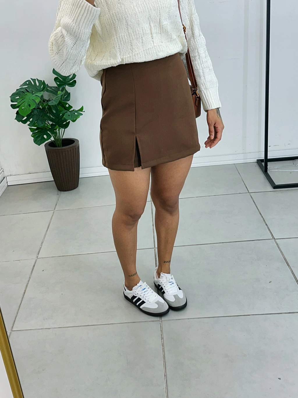 Descubra o charme e a sofisticação do nosso Short Saia Alfaiataria Fenda, uma peça indispensável para quem valoriza elegância e conforto no dia a dia. Confeccionado em tecido alfaiataria de alta qualidade, sem elastano, ele garante um caimento impecável e estruturado que realça sua silhueta com delicadeza.