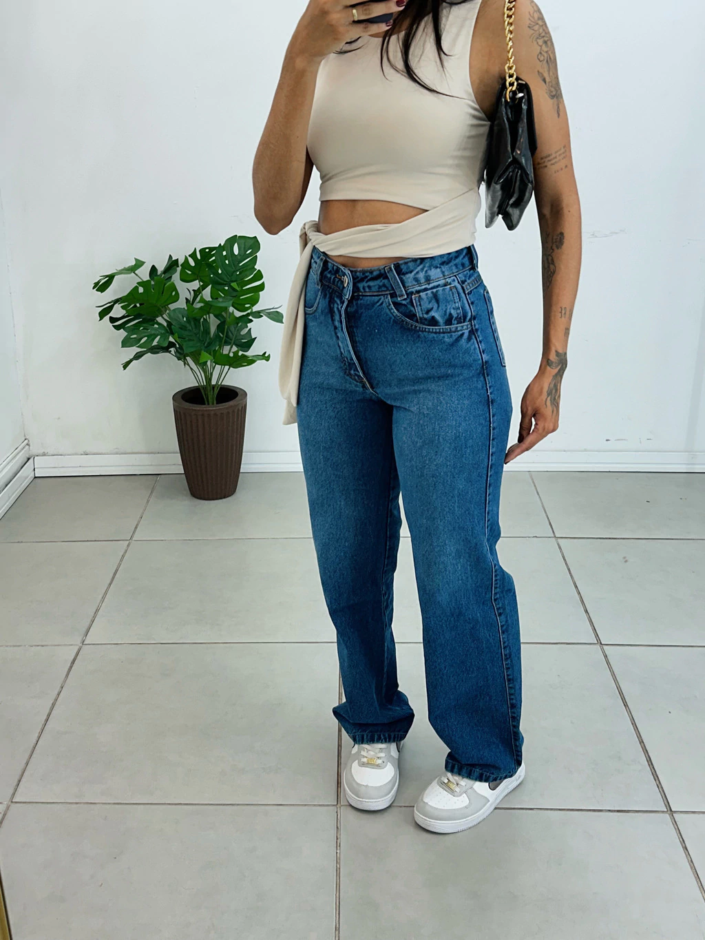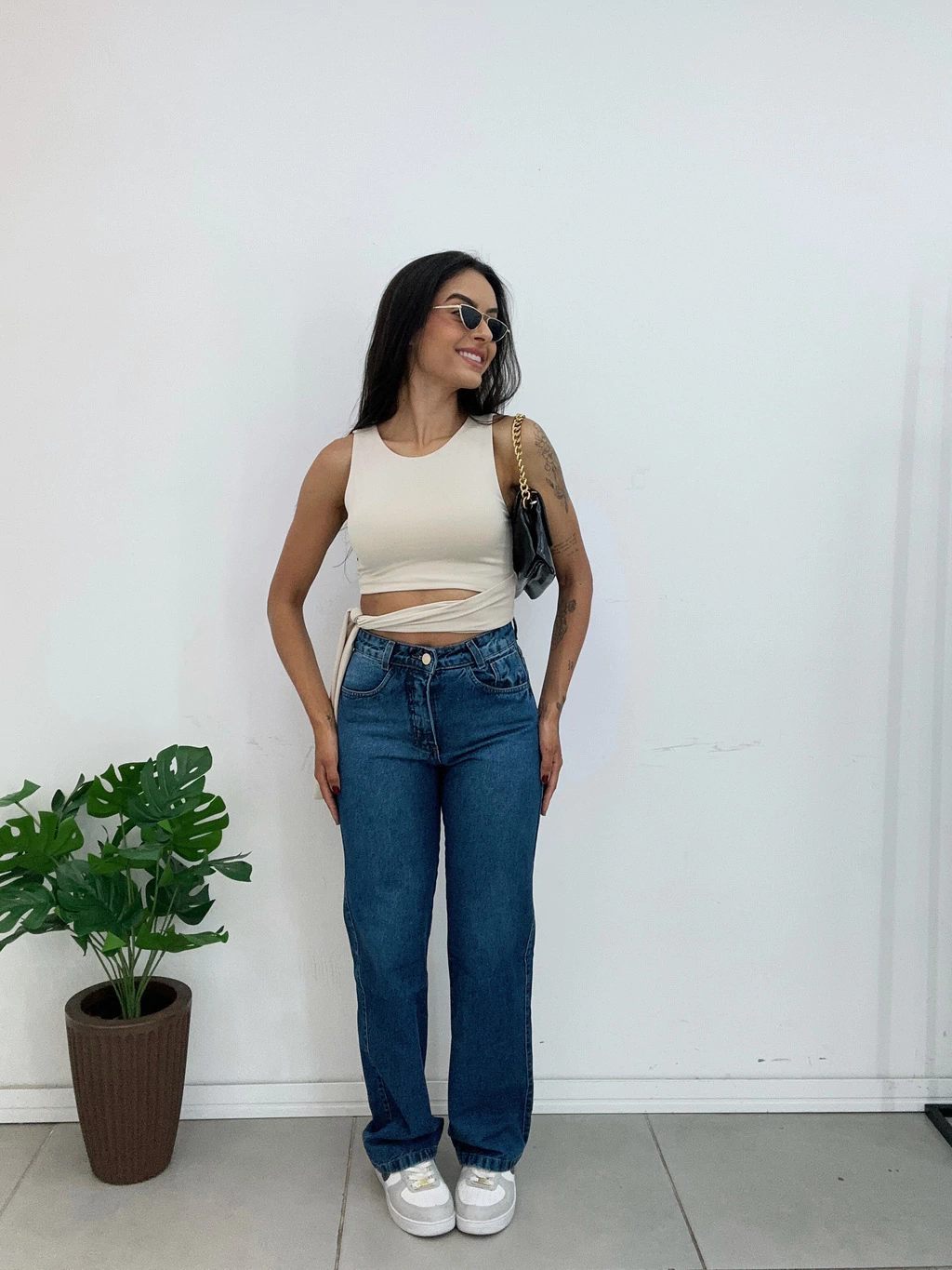 Descubra o charme irresistível do Wide Leg Jeans Daily Escura, a peça que vai transformar seu estilo com elegância e conforto. Com uma modelagem justa na cintura e quadril, que abraça suas curvas na medida certa, e pernas retas, esta calça proporciona um caimento sofisticado e moderno.