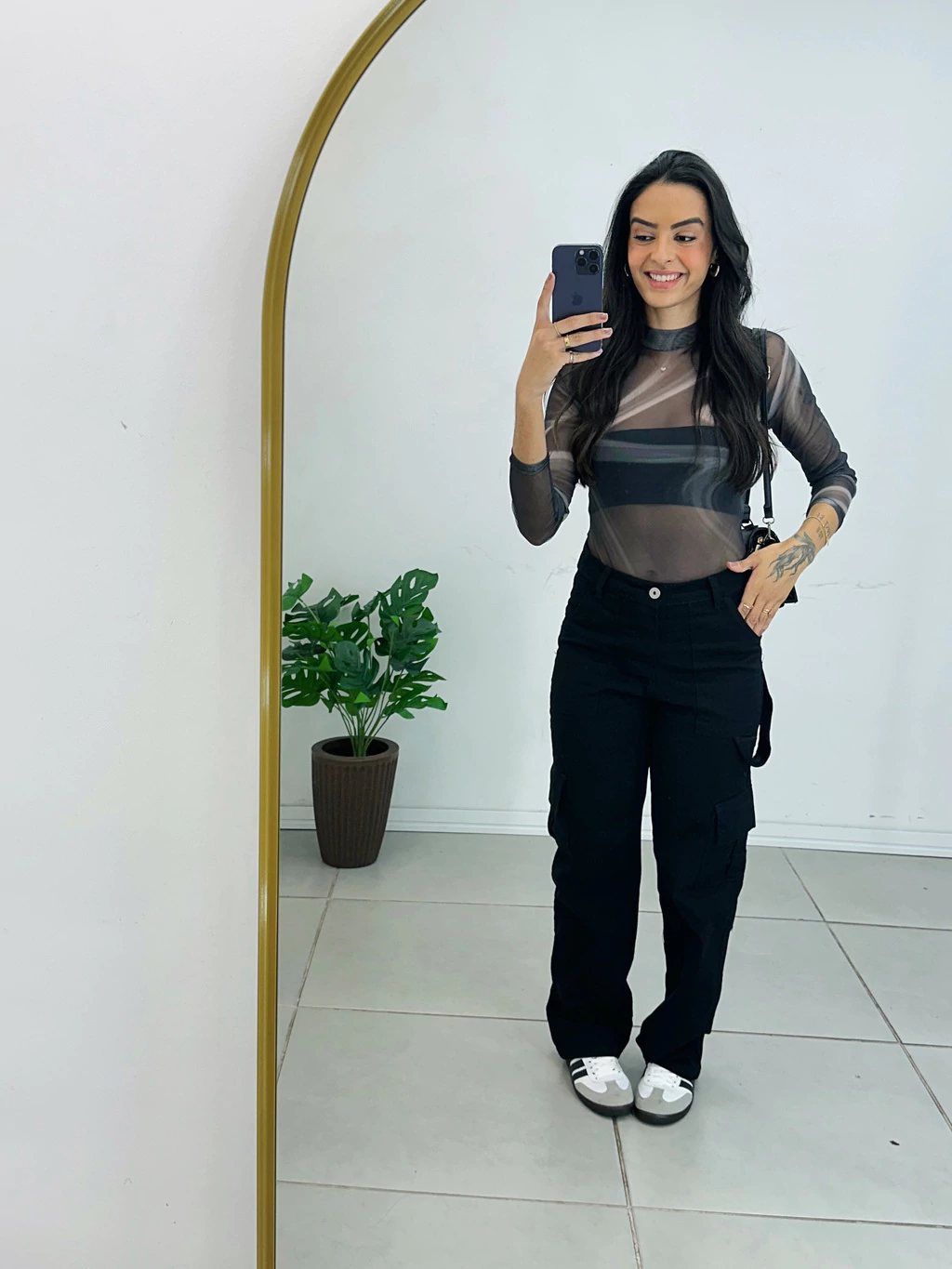 Os detalhes laterais e os bolsos cargo garantem um visual moderno e prático, combinando perfeitamente com diversas ocasiões, do casual ao urbano. Seu tecido resistente e a cor preta versátil tornam essa calça um verdadeiro coringa para seu guarda-roupa.