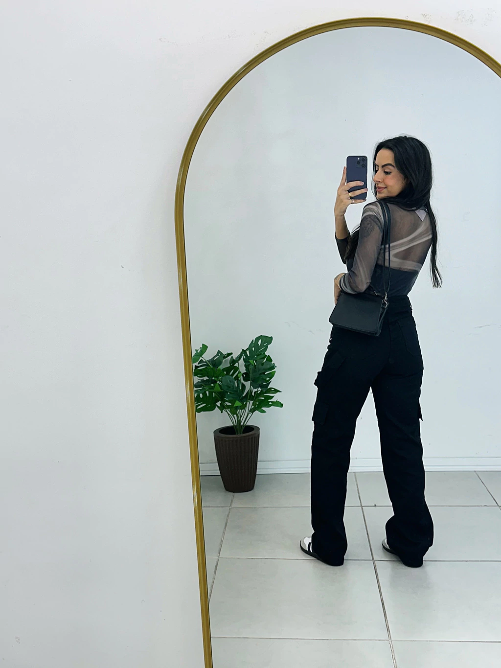 Wide Leg Cargo Jeans Preto: estilo e funcionalidade em uma só peça!