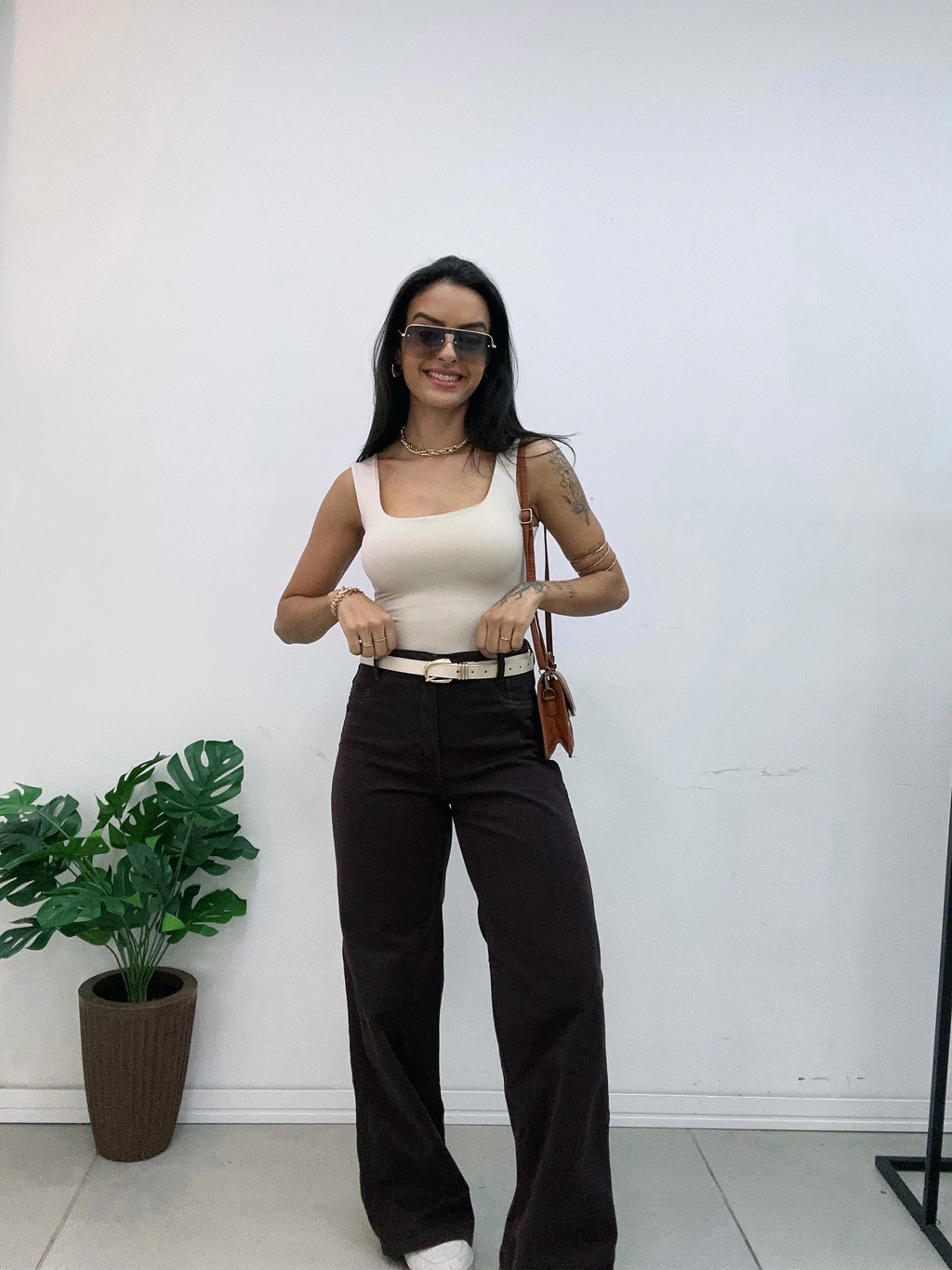 Invista em qualidade, estilo e conforto com a Wide leg jeans marrom — seu novo must-have!