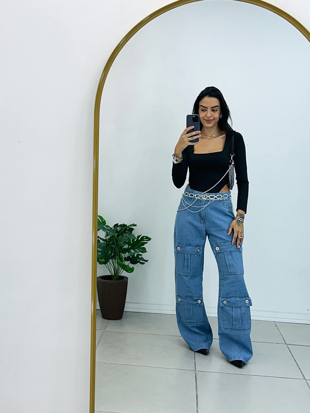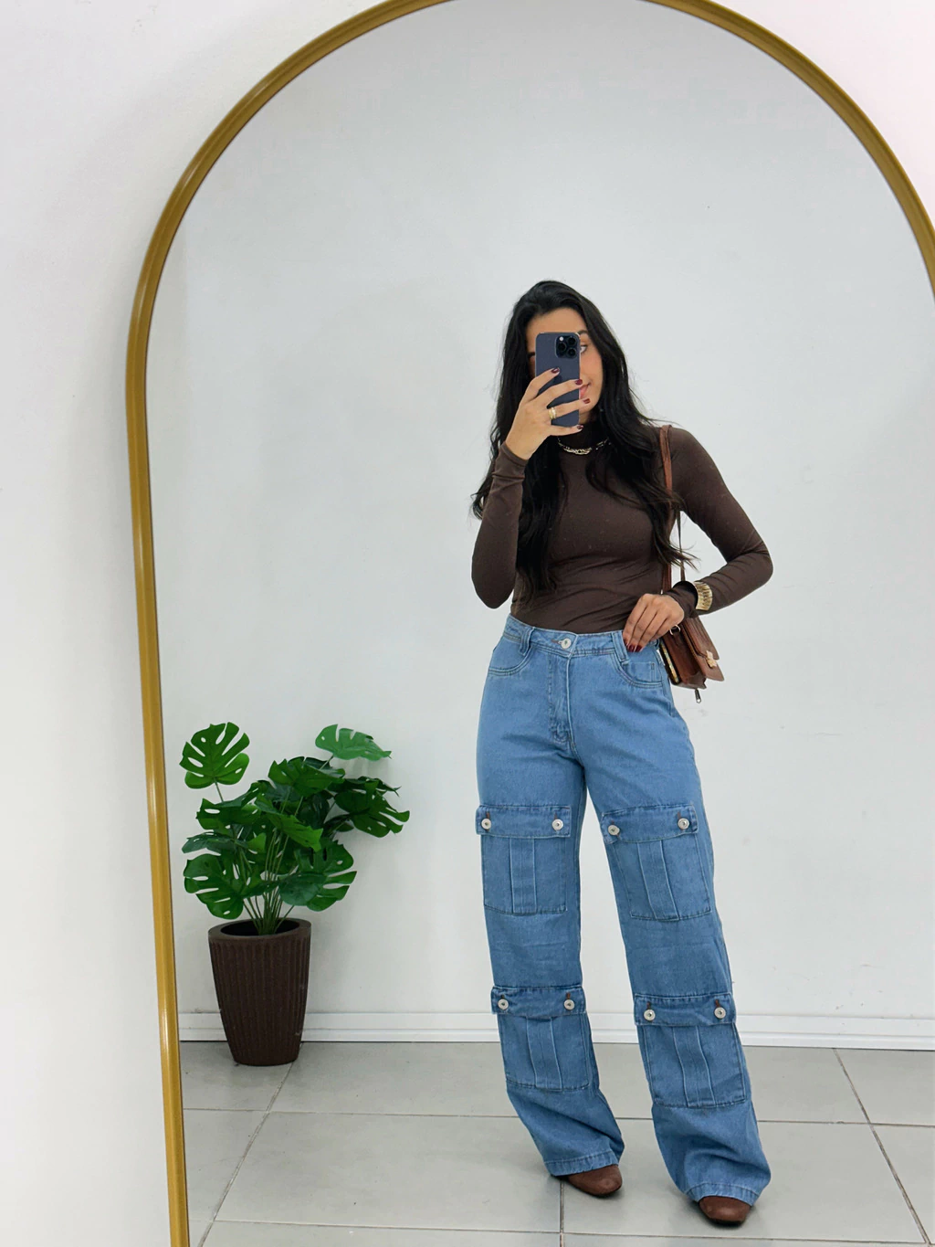 Descubra o poder da calça wide leg jeans max cargo , a peça que une estilo e atitude para transformar seu visual! Com modelagem ampla e confortável, essa calça sem elastano valoriza sua silhueta com o cós alto que destaca a cintura, garantindo um ajuste perfeito e muito charme.